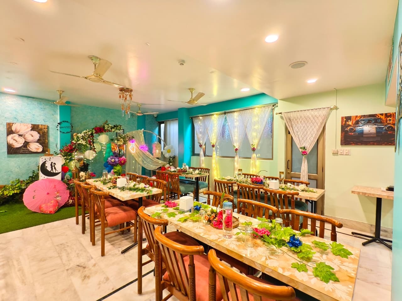Step into a realm of refined elegance as you enter our indoor dining area. The ambiance is designed to create an atmosphere of sophistication, making it the perfect setting for a romantic dinner, a special celebration, or a casual gathering with friends and family. The soft lighting, tasteful décor, and attentive service come together to provide a dining experience that is both intimate and memorable.